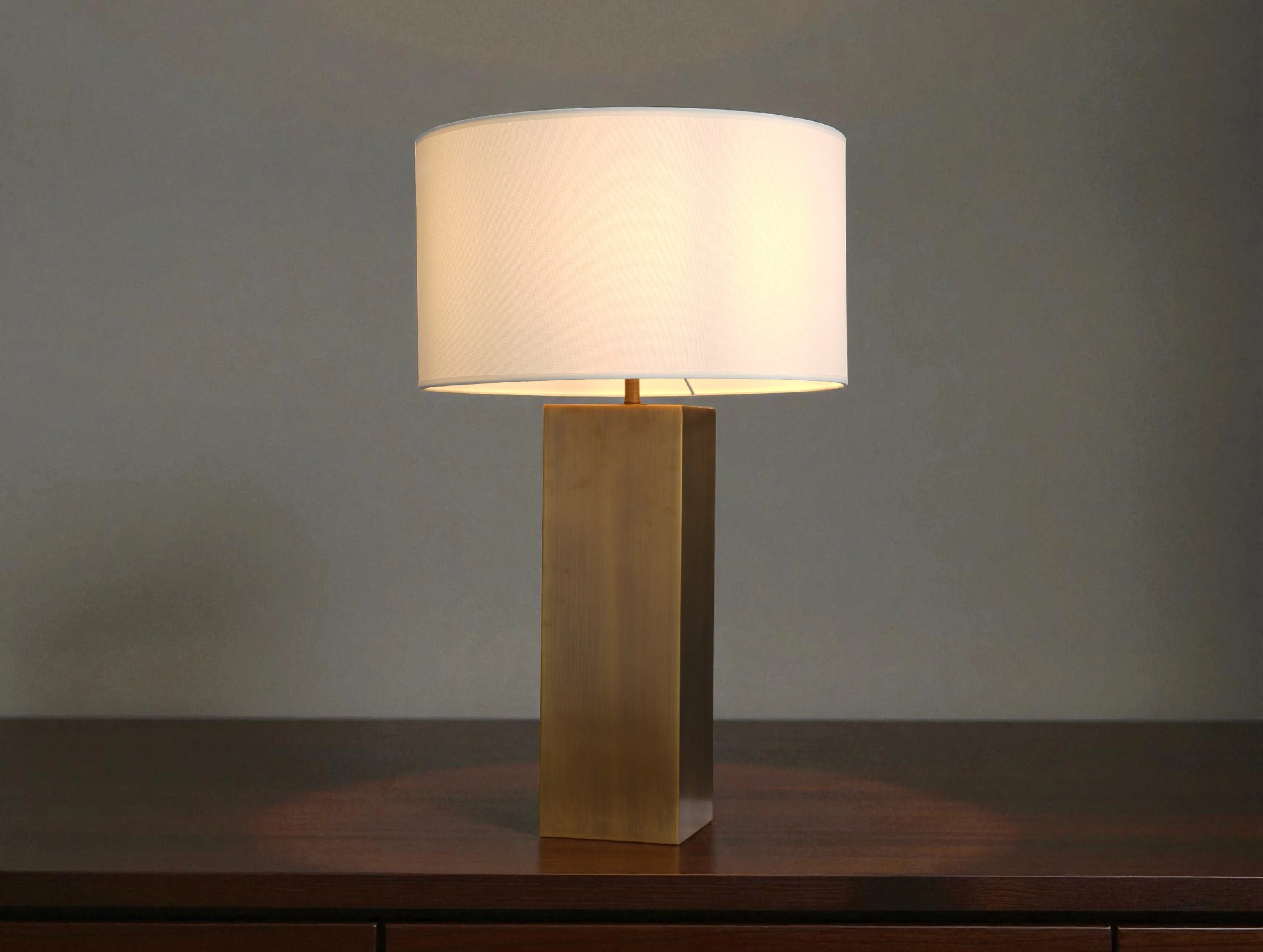 The Sorezon Metal Square Table Lamp embraces minimalist design with sculptural precision. Handcrafted from solid brass, its clean-lined form and polished surface reflect timeless sophistication. The lamp’s solid metal construction and warm finish make it a striking accent for desks, consoles, or bedside tables. Paired with your choice of a linen shade, the Sorezon brings refined simplicity and enduring beauty to any space.